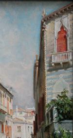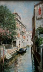 Venice motive: view of Rio delle Erbe and Van-Axel-Palace, this masterfully painting was executed in the late 19th century by an Itlian pinter in the style and from the circle of Rubens Santoro (1859 - 1942).