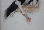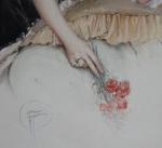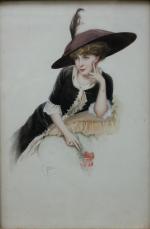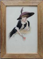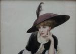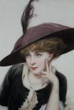 Portrait of a beauty in a hat was executed around 1900s by Fernand Toussaint (1873–1956), high quoted Belgian painter and illustrator of the 19th century. He was born in Brussels in 1873 in a family of upper-middle class. When his parents discovered his talent in drawing they helped him to develop it in full.