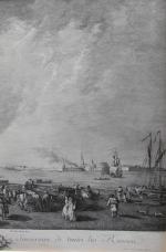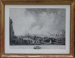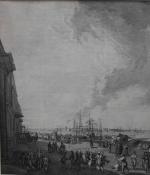 This large-Format copper engraving from 18th century depicts a bustling harbor in St. Petersburg with the Mikhailovsky Palace in the background, its quays lined with multi-masted sailing ships. Numerous individual figures are shown on the cobbled square by the harbor. It was engraved by famous etcher of the French Rococo Jacques-Philippe Le Bas (1707 - 1783 in Paris) after the painting by Jean-Baptiste Le Prince (French, Metz 1734–1781 Saint-Denis-du-Port).