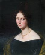 Masterfully portrait of a young Parisienne beauty was executed in 1830 by Philippe Peyrane , also known as Peyranne, famous and high listed French history and portrait painter (Castelnau-d'Estrétefonds 1780 - 1865 Tarare).