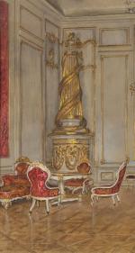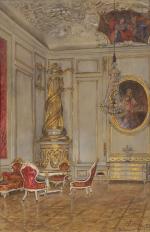 Original watercolour with interior of a room in the Residence, Salzburg was executed by Karl Müller, painter and graphic artist ( Vienna1862 - 1938Vienna).