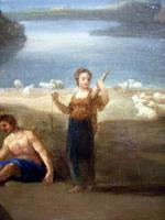 Masterfully work from the 17th century was attributed due to the quality, style and composition to the hand of well renowed Dutch landscape and figure painter Cornelius van Poulenburgh ( 1594 - Utrecht - 1667). Though his birthplace is unknown, a signed document survives in Utrecht where he is listed as six years old and the son of Simon van Poelenburch, a Catholic canon in Utrecht. He initially trained with Abraham Bloemaert and his earliest signed paintings are from 1620. He traveled to Rome where he was influenced by Adam Elsheimer and became a member of the Bentvueghels. Invited to London by Charles I of England , he soon returned to his native Holland. He painted mostly small landcapes with mythical or religious figures or passages, in a style that would later be evident in some of the works of Claude Lorraine. His "most important and successful" pupils were Daniel Vertangen, Dirck van der Lisse, Francois Verwilt and Jan van Haenbergen, Arnold Houbraken also mentions Joan vander Lis from Breda, Warnard van Rysen from Bommel, and Willem van Steenree, a nephew. Works by him situated at the Uffizi Gallery, Florence ("Mercury and Batto"); there are also paintings by Cornelis Van Poelenburgh in the Museum of Fine Arts in Budapest, Hungary.