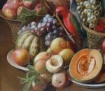 This magnificent and large great still life with flowers, various fruits and red-green parrot is a pair to our previous item No. 5268 and was executed by famous painter of Dutch origin Leopold von (van) Stoll (b.1808). He was active in Austria, around 1828 - in Warsaw and Cracov and in 1830 - 1834 - in St. Petersburg, where he was busy designing floral arrangements for the Botanic Gardens. In St. Petersburg Academy he was elected to the " designated " , and in 1831 was awarded the title of academician for the painting " Flowers and fruit group". In 1834, the artist came back to Austria to get a popular acclaim for his wonderful flower paintings and fruits. The Ermitage in St.Petersburg has a few his still life and flowers paintings in its collection ( Cataloque of Ermitage , 1901) and Viennese Schönbrunn - his still life with the statue of the nymph Egeria.
