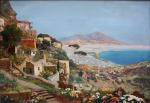 This colourfully painting with panoramic view of Naples was executed in the early 20th century by renowned and good listed Austrian landscape painter Alois Arnegger (1879-1967). The artist studied at the Vienna Academy under R. Russ and Eisenmenger and became his glory and popularity among collectors around the world for his panoramic italian views and landscapes from Alps. Other works by A. Arnegger see under item numbers: 1509, 1799, 1825, 4978.