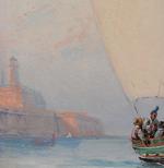 A pair of paintings with sailing boats at the Grand Harbour of Malta was executed by Luigi Maria Galea (1847–1917). He was a Maltese marine painter. He was trained in Malta as well as in Naples and Rome, Italy. His work, which often depicts Royal Navy vessels, is held in the Royal Collection.