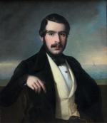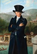 This portrait of a gentleman with sailing ships on the background was executed around 1830s and purchased together with another similar portrait of his relative in the private estate of Austrian noble family Galatti. Due to the family legend the another portrait, which was sold by us months ago. (see our last additional image) is to be said Michele Tomaso Galatti (born 1805 in Chios , died in Graz), the Gouverneur of Triest and Austrian Coast in 1830-1840.in this case our actual portrait can be of a relatives of this Gouverneur.