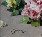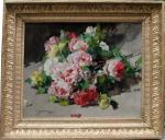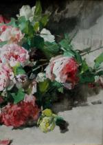 Still life with scattered roses was executed in last quarter of 19th century by famous French still life painter Georges Jeannin (1841 - Paris - 1925). . He was a pupil of Vincelet and went on to be a most prolific and popular flower painter. Known for his still lifes, Jeannin debuted at the Paris Salon in 1868 where he exhibited regularly. The French State bought many of his flower paintings. In conjunction with A. Cesbron he decorated the Salon de Passage in the Hôtel de Ville in Paris. He was the chairman of the Societe de Peintres de Fleurs and he was conferred with the award of Chevalier de la Legion d’Honneur in 1903. This is the highest honor that a civilian can be awarded in France.