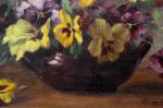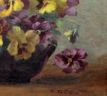 Stil life with pansies in a ceramic vase was executed by Austrian painter Camilla Goebl-Wahl (Goebl), born 1871 in Vienna. 1893-1898 she was a student of R.Geyling, Olga Wisinger-Florian and A.D.Goltz. She exhibited for the first time in 1896 in Vienna Artists Unit (Wiener Kuenstlerhaus).