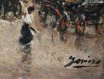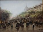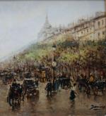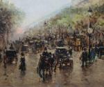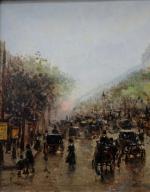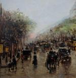 Busy urban life on the Drouot crossroads in Paris was executed by Catalan painter Gaspar Miró i Lleó (Vilanova i la Geltrú 1859 - Barcelona 1930) during his life and work in Paris in 1901-1914.