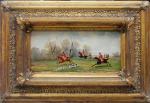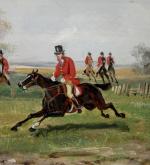 This painting with noble horsemen on the fox hunt was executed in the late 19th century by an represantative of English school.
