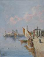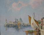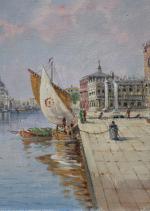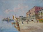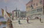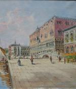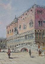 Scene in the front of the Doge Palace in Venice was executed ca. in 1900-1930s by good listed Austrian female landscape painter Lilly Aurelia Hofmann- Wimmer (1879 Vienna- 1953 Puchberg ). She exhiited her works at the exhibition "Die Österreichische Landschaft" by the artist union "Kunstgemeinschaft" in Vienna in 1927.