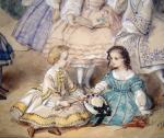 Nice pair of children family portraits were executed ca. in 1850s by good listed French figure, miniature and genre watercolour painter Heloise Susanne Colin, in marrige Leloir (1820 - Paris - 1873). She was daughter of historical painter Alexandre-Marie Colin and mother of painter-illustrator Maurice Leloir. Heloise Colin married painter Jean-Auguste Leloir in 1842.