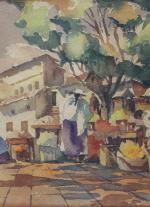 Market scene in the town Quito, the capital of Ecuador was executed in 1943 by Columbian-Venezualian artist