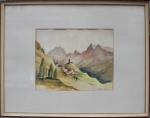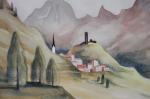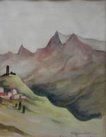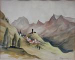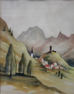 View of the village Scuol Engadin in the Swiss canton Graubünden was executed by Carinthian painter, sculptor and graphic artist Paul Leopold Kassecker (1903 Villach - 1992 Aflenz Kurort).
