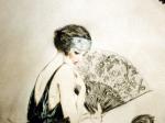 A pair of very decorative original etchings (partly hand-coloured by the artist) created in 1920s by Jean Hardy, listed french etcher, decorator and illustrator, the artist from the circle of world-known art deco designer Louis Icart. Hardy´s art deco etchings with french beauties were very popular in Paris in the beginning od 20 century .